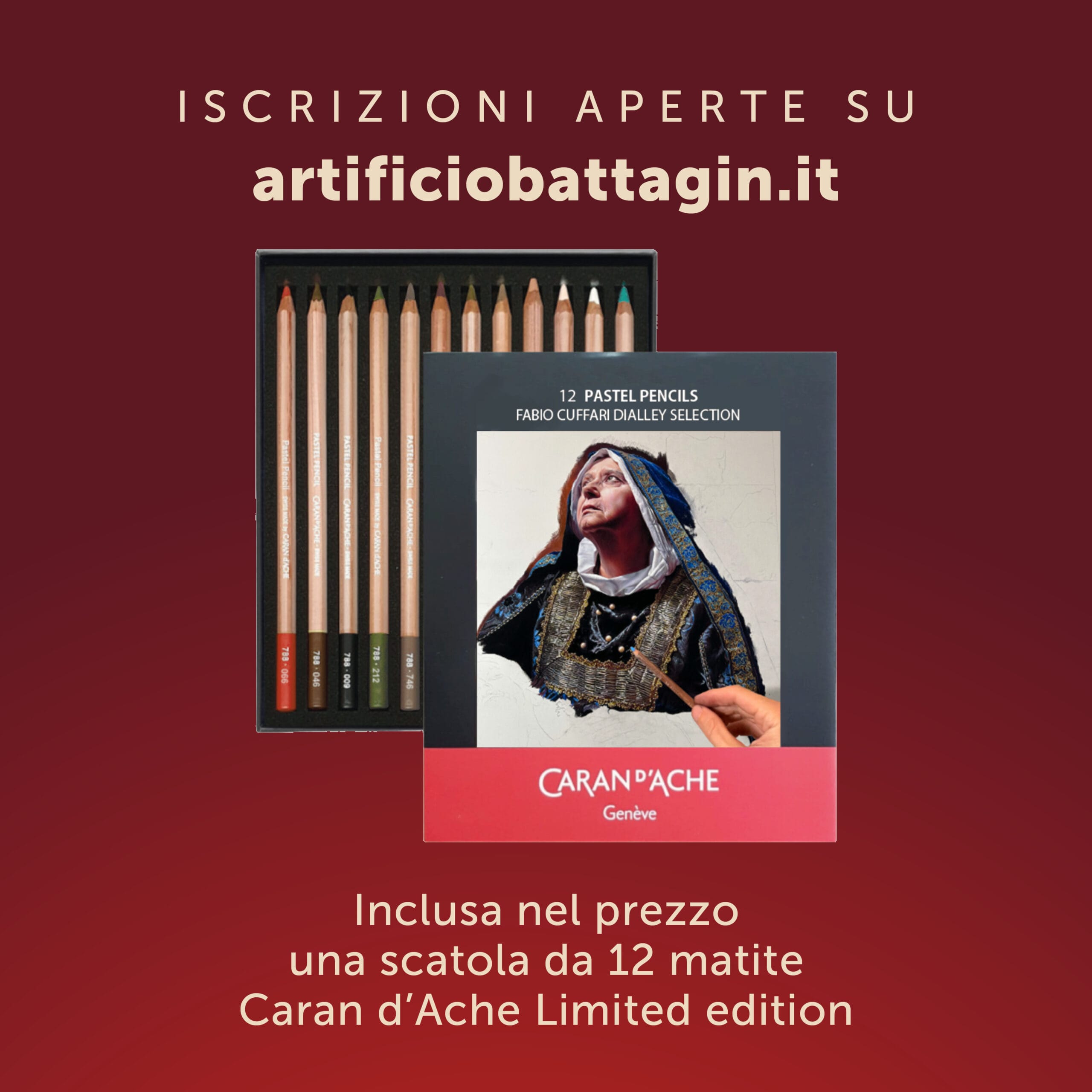 Il Maestro pastellista Fabio Cuffari Dialley, vincitore di prestigiosi premi e protagonista di numerose mostre in Italia e all’estero, sarà ospite all’Artificio Battagin per una dimostrazione dal vivo delle Pastel Pencils Caran d’Ache, matite a pastello extra fini, rinomate per i pigmenti intensi, l’elevata coprenza e la straordinaria sfumabilità.