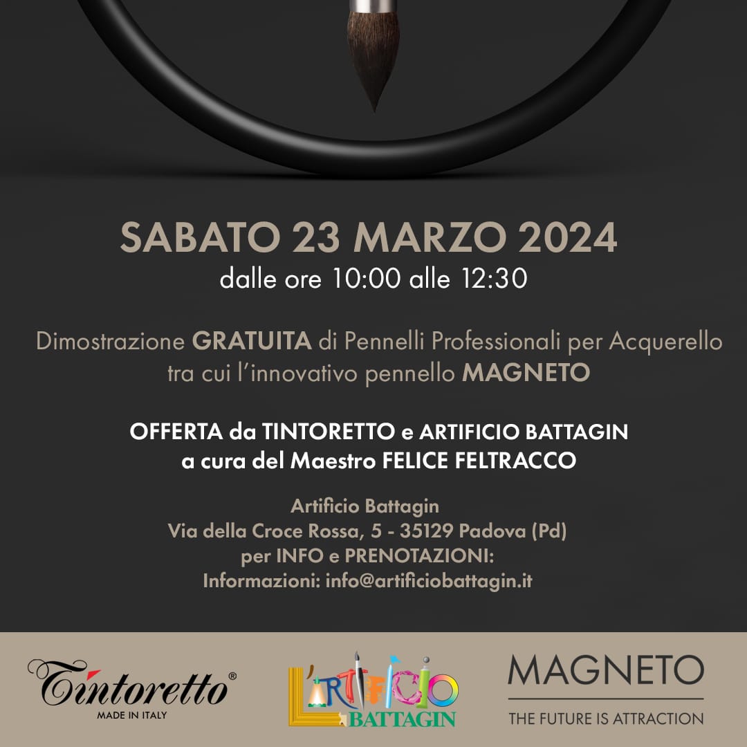 SABATO 23 MARZO dalle ore 10:00 alle 12:30 ti aspettiamo nel nostro Negozio per vedere all’opera questo grande Artista e scoprire la gamma di pennelli Tintoretto, prodotti unici per chi ama l’acquerello!