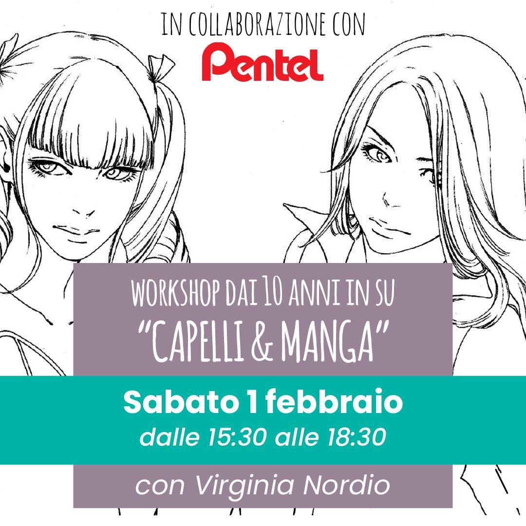 🇯🇵✨ Workshop “Capelli e Manga”, dai 10 anni in su, con Virginia Nordio e Pentel. 🖊️💖